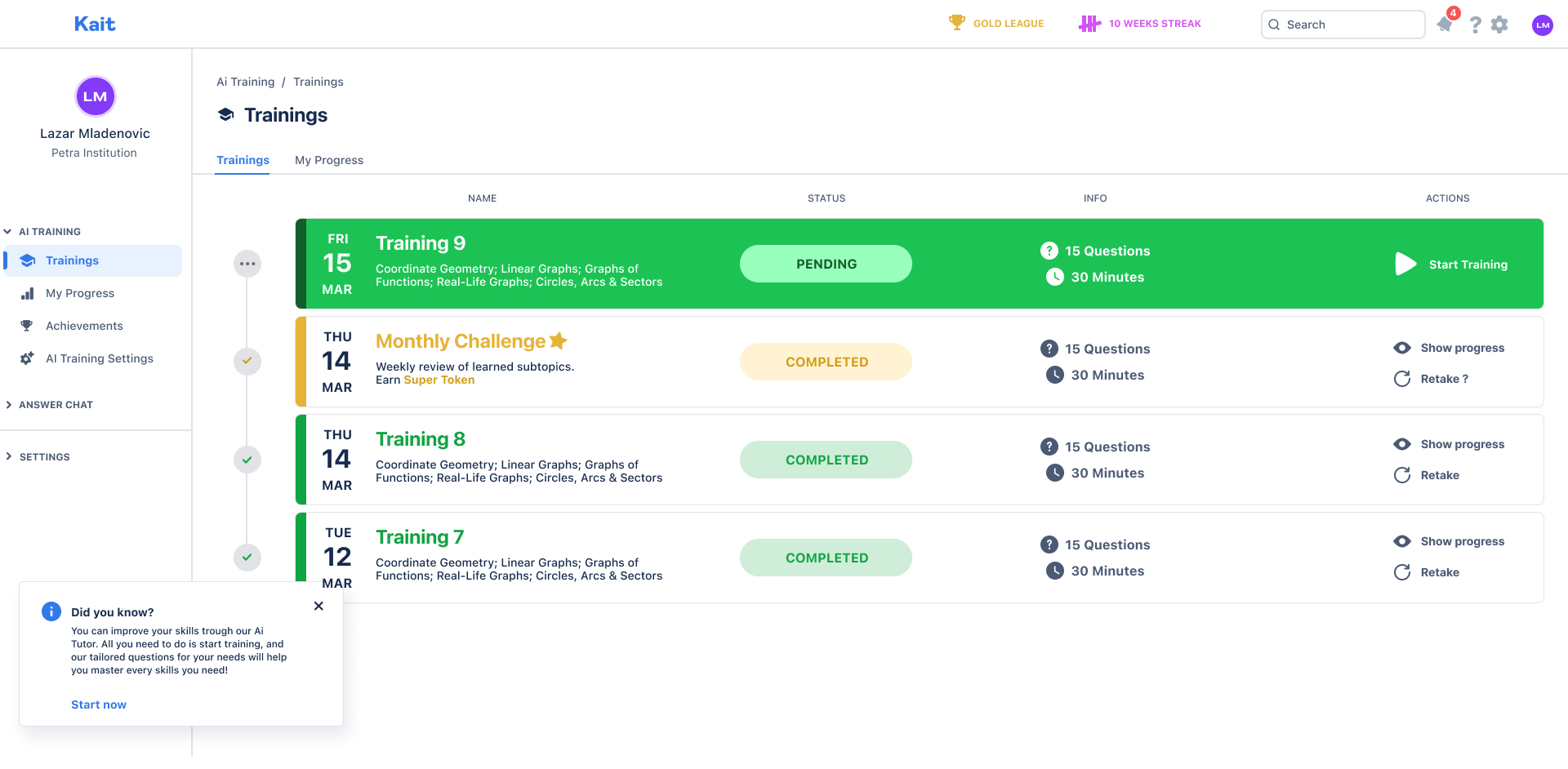 Kait operated at large scale with diverse student abilities, curricula, and learning speeds.