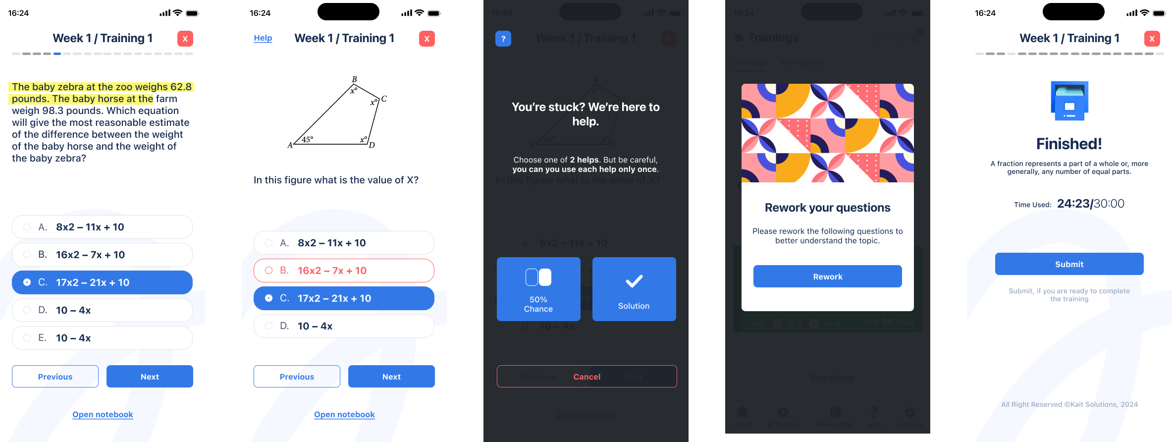 Designs were system-driven, allowing the adaptive logic to evolve without breaking the student experience.